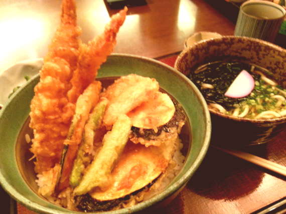 今、天ぷらうどんを食べているようだ。