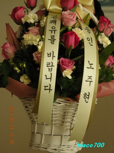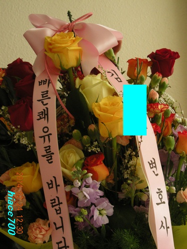배우의 노주현씨로부터 꽃을 받았다
