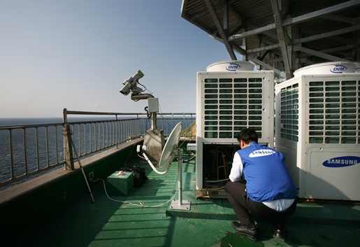 三星電子は 2006年独島警備隊に設置したシステムエアコン点検のためにサービスエンジニア 2人を独島に派遣してシステムエアコン DVM PLUS 製品の室内期 20台, 室外期 5台に対する点検サービスを実施した.