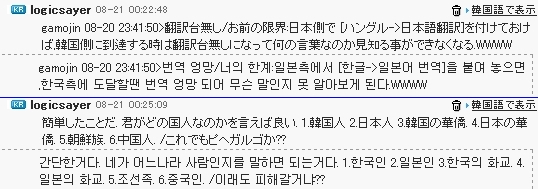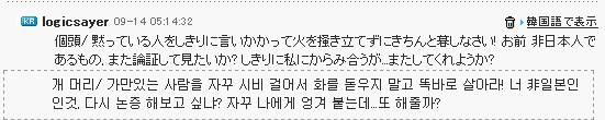 に於いてlogicsayerが私を【韓国人だろう?】と言い始めました。