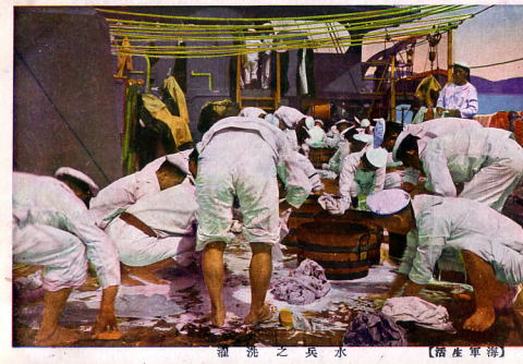 『海軍軍人はキビキビ動かんとあかんのや、フンドシ洗い終わる前に