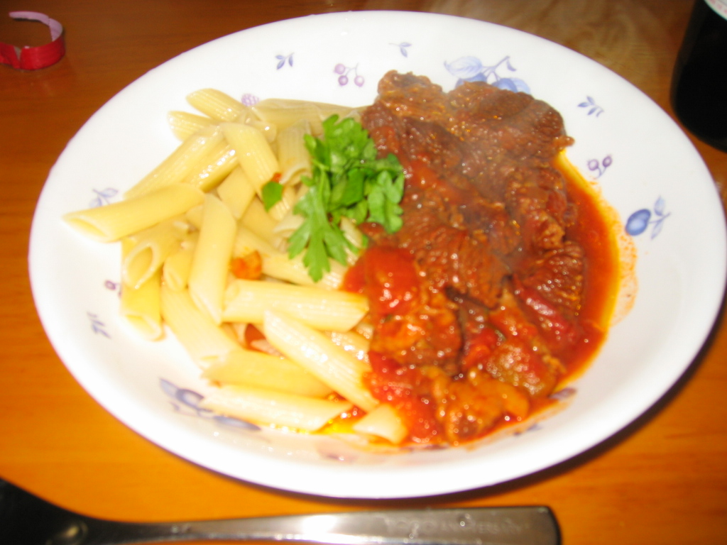 연말에 만든 쇠고기의 토마토 와인 삶어. 내가 만든 것에 비해서는 능숙했어요―(′ё`)