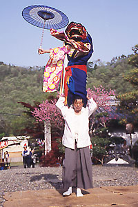 の演目は、大きく分けて、舞(獅子舞)曲(放下芸)との二つで構¥成されています。