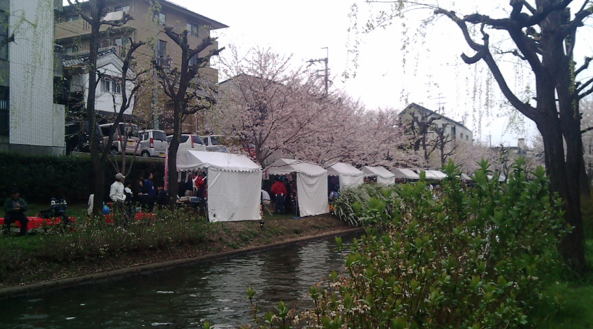 비와코로부터의 소수의 물이 흐르는 강의 부근에 포장마차가 출점 해 취합니다.