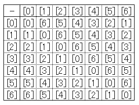 引算は足算の逆演算なので簡単に表¥を作れます。