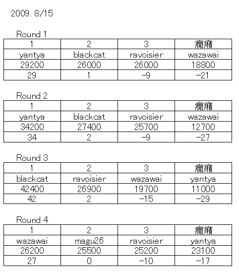 昨晩の結果