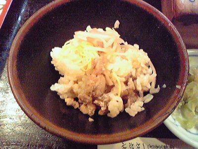 この店、給料日前の何日間かはメニューのひとつ「とりそぼろ釜飯」が580円になります(この時牡蠣釜飯は中止ななることも)。
