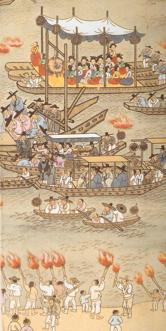 풍 악이 하늘을 울리고 돛배가 강을 뒤덮었다. 감사는 누선(樓船)에 높이 앉고 여러 수령들도 다 모여들어 잔치가 크게 벌어졌다. 맑은 노래와 아름다운 춤에 그림자는 물결 위에 너울거리고 성머리와 강언덕은 사람으로 산과 바다를 이루었다”고 그 성대함을 묘사하고 있다.