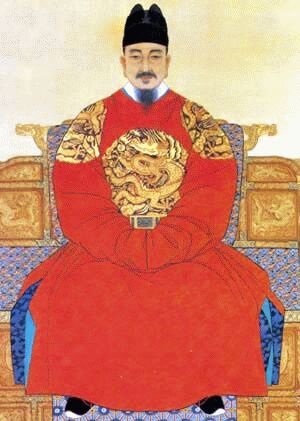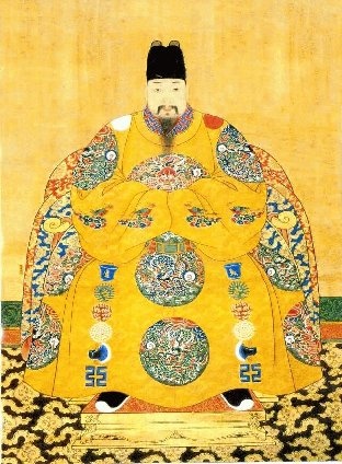 참고로 2개의 사진은 위가 중국의 황제, 아래가 조선 임금이다. 중국 황제가 용이 아홉 마리 노란 관복인 반면, 조선 왕은 용이 세 마리 빨간 관복이다.