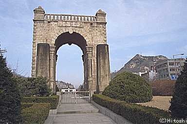 ▲日清戦争によって認められた朝鮮の独立をおめでとう 1895年に建てられた 「独立門」.「ヤングウンムン」があった場所に建てられた.