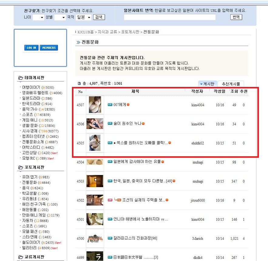 이쪽의 게시판에 있어서의 한국인 위안부의 어필