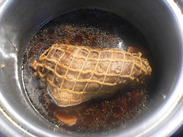 自家製(手作りの)、ローストビーフ(roast beef)(作っている途中)。肉は、国産(日本産)の、牛肉の、股肉。ローストビーフ(roast beef)は、年末に、国産(日本産)の、牛肉の、股肉で、もう一つ作り、年末年始に食べました。