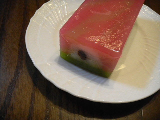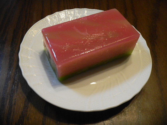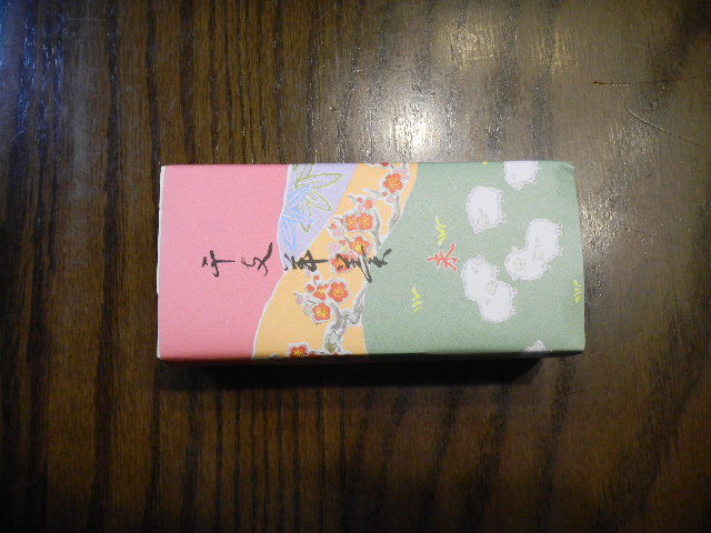 写真以下5枚。両口屋是清(ryoguchiya korekiyo)(下の補足説明参照)の、正月用の、羊羹(yokan)(日本伝統菓子の一つ)