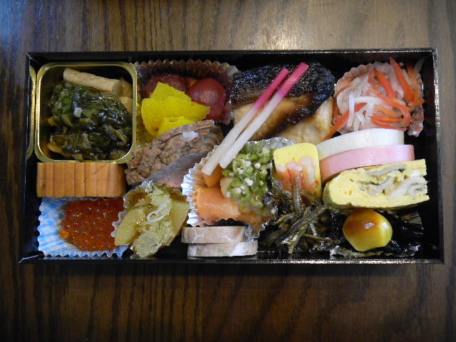 お節(osechi)料理は、日本の家庭で、伝統的に、正月に食べられている料理で、正月に、主婦が、家事から開放される様にと?、また、正月には、多くの商店が休みとなる為(現在は、マートに関しては、正月でも営業している店が多いですが)、保存が効く料理が中心となっています(もっとも、お節(osechi)料理は、ほとんどが、お正月だけ食べる料理と言う訳では無く、お正月以外も、食べられている料理です)。昔は、お節(osechi)料理は、家庭の主婦が作るのが主流でしたが、お節(osechi)料理は、作るのに手間が、かかるので、女性の社会進出が進み、専業主婦の割合が減るにつれて?、市販の、お節(osechi)料理が、popularとなって来ました。市販の、お節(osechi)料理は、一般的に、内容に比べて、値段が割高ですが、これは、作る手間(時間)の値段だと(時間を金で買うと)、考えると良いのかもしれません。。。昔は、お節(osechi)料理は、当然、日本料理でしたが、現在は、高級日本料理屋以外(例えばフランス料理レストランや中国料理レストラン)でも、お節(osechi)料理を、メニュー(menu)に加えて、予約注文を受け付けている所が有ります。また、比較的チープな(安い)、マート等の、お節(osechi)料理も、かなり一般的となっています。