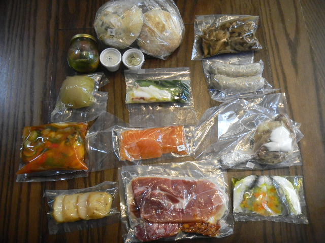 写真以下2枚。私の街の、お気に入りのフランス料理レストランの一つの、お節(osechi)料理。内容は、以下の通り。色々(様々な)茸と干し葡萄のマリネ(marinade)。蛸(北海蛸)の頭と胡瓜のマリネ(marinade)。自家製粗挽き、ソーセージ(sausage)。ラタトゥイユ(ratatouille)。スペイン産の生ハム(ham)、イタリア産のサラミ(salami)、スペイン産のイベリコ(Iberian)豚のチョリソ(chorizo)。フランス、シャラン(Soullans)産、鴨肉(鴨の股肉)の、コンフィ(confit)。北海道(hokkaido)産の帆立(貝)の、スモーク(somoked)。三色オリーブ(olive)のマリネ(marinade)。江戸前コハダ(kohada)のマリネ(marinade)。タスマニア(Tasmania)産、サーモン(salmon)のマリネ(marinade)。サーモン(salmon)のマリネ(marinade)用の、オニオン(onion)、ケッパー(caper)、ドレッシング(dressing)。玉葱のブレゼ(braiser)。玉葱のブレゼ(braiser)用、ロックフォールチーズ(roquefort)ソース(sauce)。ローストポーク(roast pork)。豚のモツ(内臓)と白インゲン豆の煮込み。手羽先(鶏肉)の黒米詰め、マデラ酒(Madeira wine)風味。天使の海老(New Caledonia産海老)の、オレンジ(orange)風味。ローストビーフ(roast beef)。ローストビーフ(roast beef)用、粒マスタード(mustard)。フォアグラ(foie gras)・トリュフ(truffle)入り、鶏肉(地鶏)のガランティ―ヌ(galantine)。豚肉(三元豚)の、リエット(rillettes)。野菜のギリシャ(Greek)風、マリネ(marinade)。パウンドケーキ(pound cake)。レストラン自家製の、パン(パンの内の一つは、海藻(seaweed)入りのパン)。