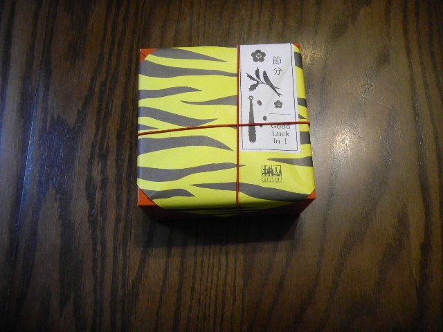 写真以下2枚。おまけ(年末年始の食べ物とは、関係がありません)。柿山(kakiyama)(東京都心(赤坂(akasaka))に、本店(本社)がある、おかき(okaki)・煎餅(senbei)店(おかき(okaki)・煎餅(senbei)会社)の、節分(setsubun)時期の、製品。箱の中に、煎餅(senbei)・おかき(okaki)と、節分(setsubun)用の、豆が入っています。煎餅(senbei)・おかき(okaki)は、(主として)米から作られた、日本の、伝統的なスナック(snack)菓子です。日本では、伝統的に、節分(setsubun)(2月の初め)に、「鬼(oni)は、外(soto)、福(fuku)は内(uchi)」(意味は、「鬼(oni)は外へ、福(幸運・幸福)は中へ」と言う意味)と言いながら、節分(setsubun)用の、豆(炒った大豆。食べる事が出来ます)を、家の中から家の外等に、撒く風習があります。「鬼(oni)」は、「鬼」と漢字で書くと、もしかしたら、韓国語に翻訳される際に、「お化け」とか、「幽霊」とかに訳されてしまうかもしれませんが、妖怪(yokai)(日本で、昔から言い伝えられている、モンスター(monster)の総称)の一つで、代表的な、妖怪(yokai)の一つです。