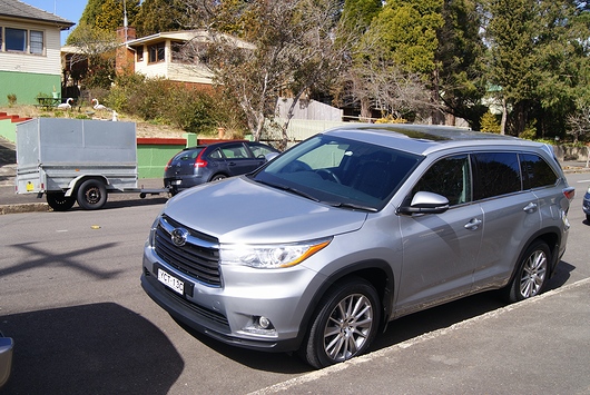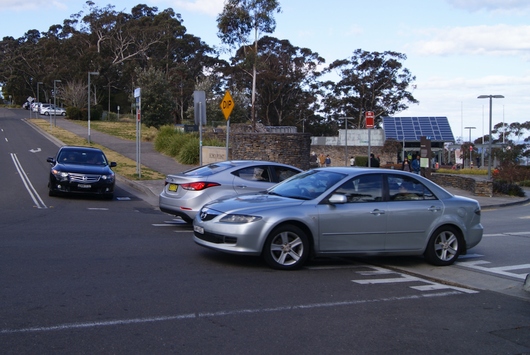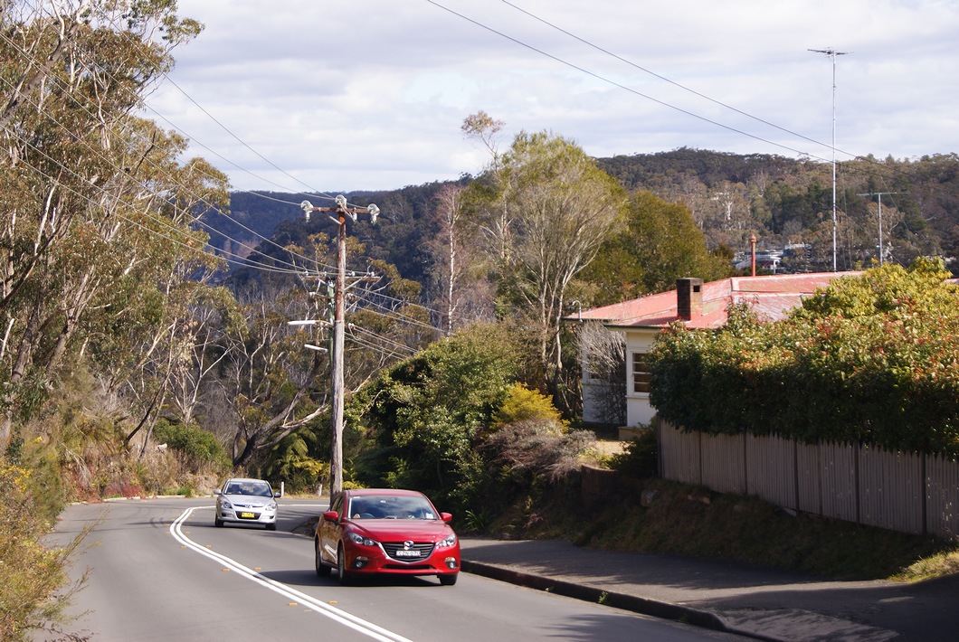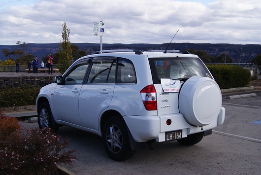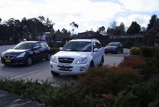 到着した。Katoomba駅近くの自動車。Mazda「CX-9」、NISSAN「Pulsar Sedan」、TOYOTA「COROLLA Hatch」、KIA「Carnival」。