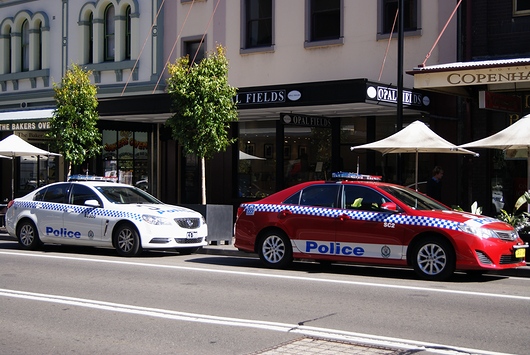 シドニーのパトカーは、こんな感じ。Holden「Commodore」とTOYOTA「CAMRY」。