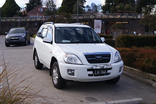 はっと!奇瑞汽車(Chery)の「J11」ですね。後ろに見えるのは、HYUNDAI「ix35」です。