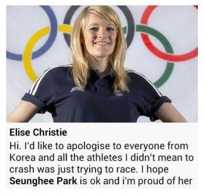앨리스・크리스티는 레이스 후, 자신의 페이스북크로「접촉은 고의는 아니었다」와 사죄한 다음, 파크・슨히에 경의를 나타냈다.