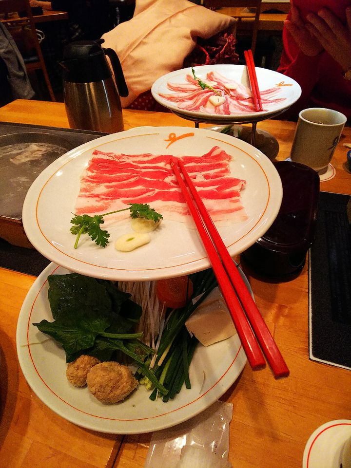18 시경 갔습니다만, 곧 들어갈 수 있었습니다.그 나중에 혼잡했기 때문에, 빠른 분이 기다리지 않습니다.카고시마에 본점이 있다 모아 두어 흑돼지의 샤브샤브가 인기같았습니다.파를 많이 넣은 곁국물로 시원스럽게 한 흑돼지를 받습니다만, 매우 맛있었습니다.마지막에 곁을 들어갈 수 있어 먹었습니다만, 딱 좋은 양이었습니다.가격은 한 명 3000엔입니다.디저트의 백곰은, 다음 번 먹고 싶습니다.