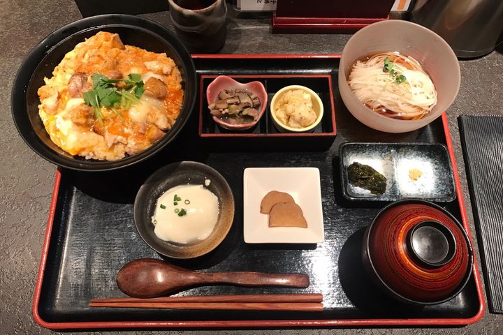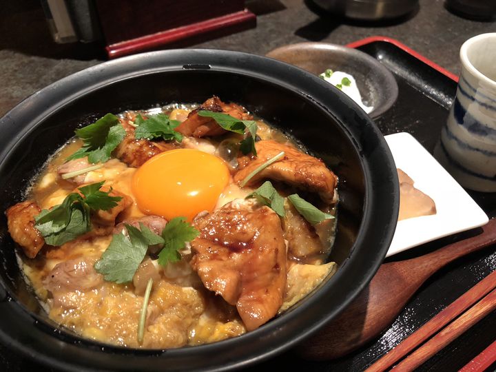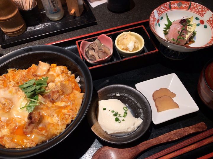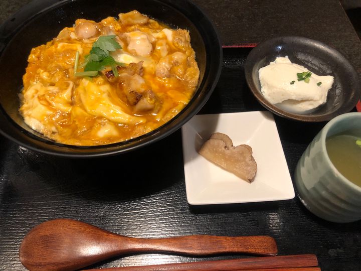 焼鳥は炭火で炙った照り焼き味。卵黄もついて濃厚!とろとろの親子丼にいぶりがっこ、お豆腐、出し汁がついて大満足でした。