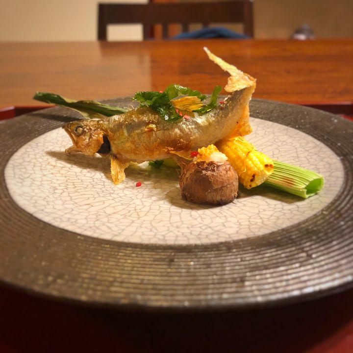 お料理に使う新鮮な鮎をプレゼンしてくれたり、一品一品が、とても凝っていて和食の域にとどまらない美味しさ
