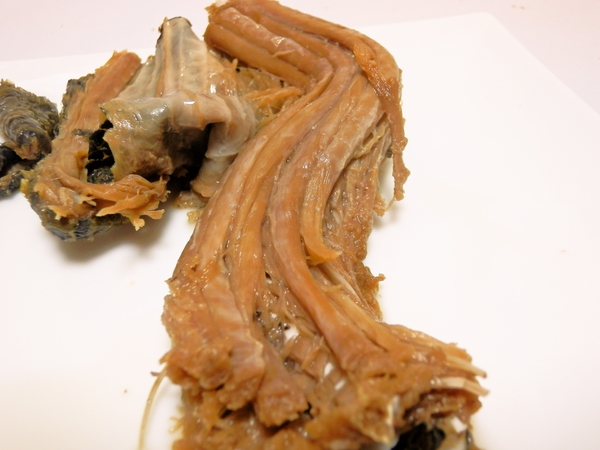 肉質は、コンビーフのようで特に嫌な匂いはないけれど、旨味もない。