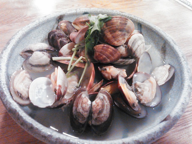 <바지락조개의 생선류에 소금과 술을 섞어서 찌>