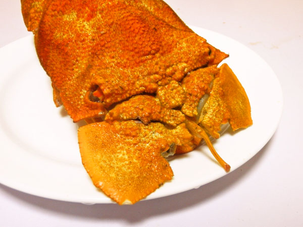 何故かというと、この海老は加熱して甲羅が赤くなっても身は生きていた時と同じ紫がかった茶色と暗い灰色のまだらのまま。要は、見てくれが悪いから。