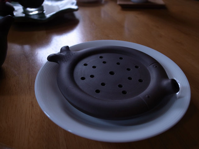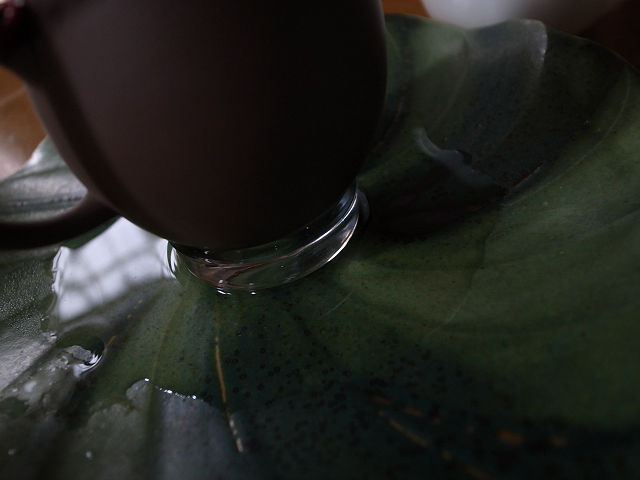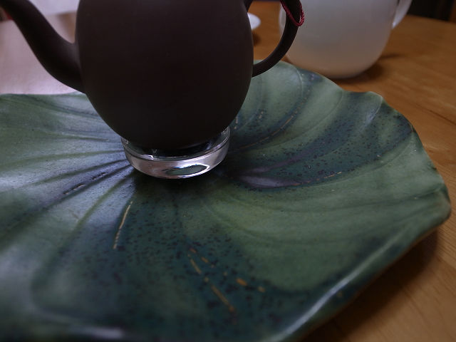 少し深めの鉢(皿)に茶壺を置けばそれでいいのですが、捨て湯に茶壺が浸かりっぱなしも