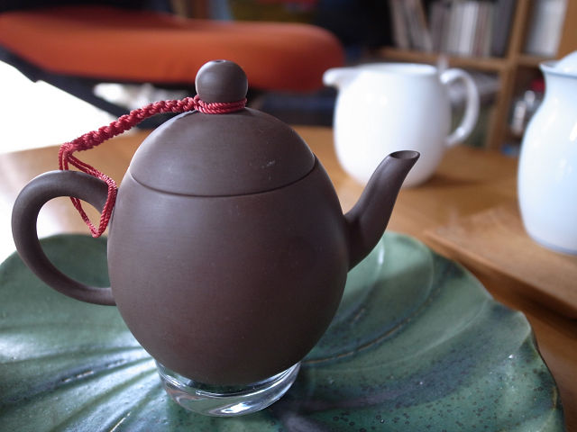 中国茶の茶器、土を高温で焼いた、素焼きの茶壺は、使い続けて茶の成分が染み込むほどに、