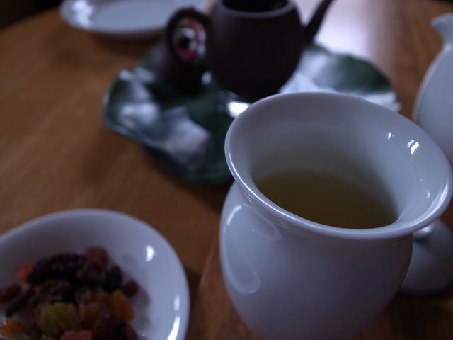 매화의 우롱차 익혀인가 금귤의 조림을 먹으면서, 점주와 이야기.