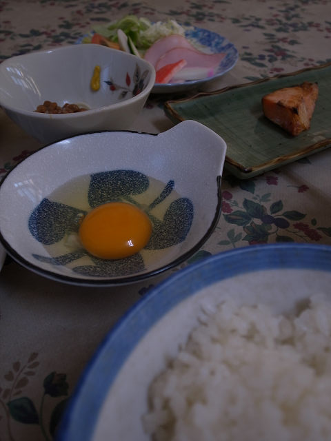 だから、久し振りの旅の朝の生卵。 ちょっと頬が緩みます。w