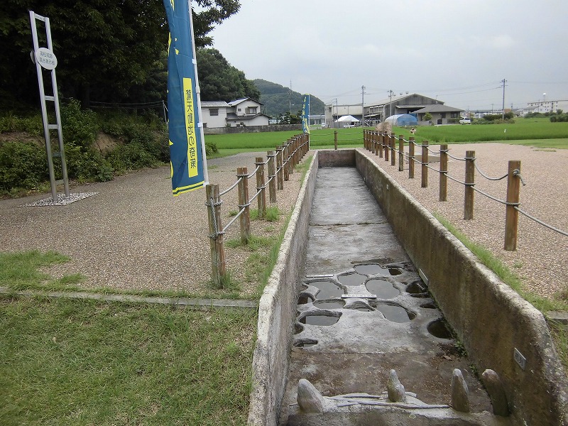도랑아래가 당시의 지층왼쪽의 철의 기둥이 당시의 제방의 높이입니다