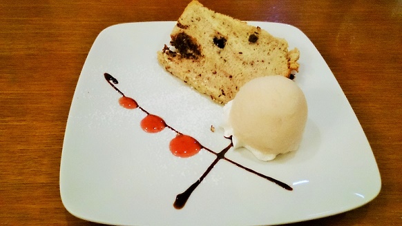 チョコチップ入りシフォンケーキと梨のシャーベット
