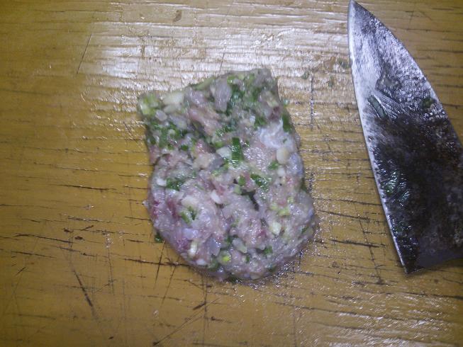 大きなまな板が無いため、現場で拾ったコンパネを熱湯消毒して使用しています。