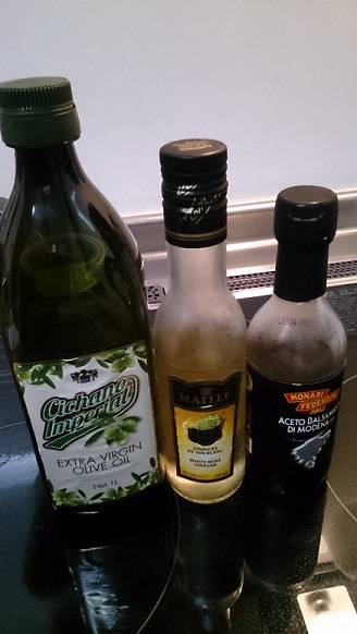 味付け用のタレはバルサミコ酢とオリーブオイル、白ワインビネガー、