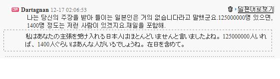 => 위안부 옹호를 하는 일본인은 거의 없다는 Dartagnan 의 주장. 그렇다면 위안부를 반대하는 1,000명은 더 없다는 결론에 도달!