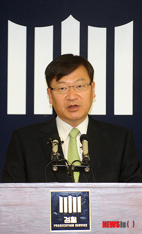 【서울=뉴시스】박상훈 기자 = 22일 오후 서울 중앙지방검찰청에서 정경식 제2차장 검사가 범죄를 저지르고 추방됐다가 신분을 속이고 다시 입국, 불법귀화한 중국인들을 기소한 경위를 설명하고 있다.