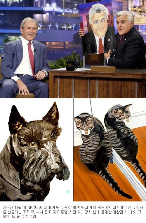 부시의 뛰어난 그림 솜씨는 1년 전 한 해커가 부시 가족의 이메일 계정을 해킹해 부시의 그림들을 인터넷에 유출하면서 세상에 처음 알려졌다. 지난해 11월 부시는 NBC방송의 ‘제이 레노 토크쇼’에 출연, “퇴임 후 윈스턴 처칠 전 영국 총리의 에세이 ‘취미로 그림그리기(Painting as a Pastime)’를 읽은 뒤 그림에 관심이 생겨 미술 수업을 받았다”고 밝혔다