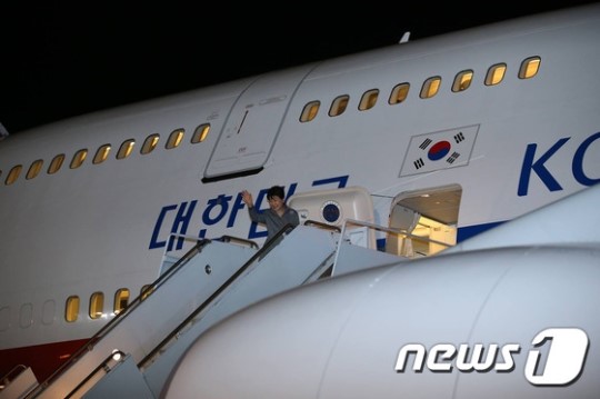 パク・グンヒェ大統領が去る 6泊 7日間のカナダ国賓訪問及び UN 訪問日程を終えて帰国の道に上がっている. (青瓦台) 2014.9.25/ニュース1