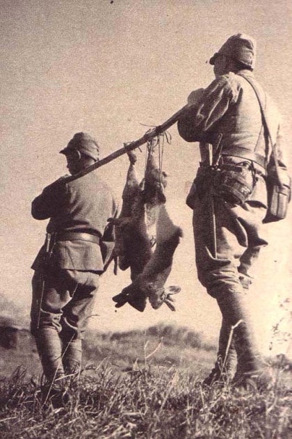 戦争中. 狩りと採集で飢えを解消する倭人.