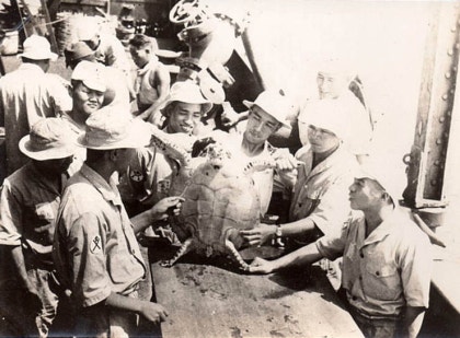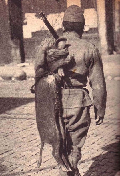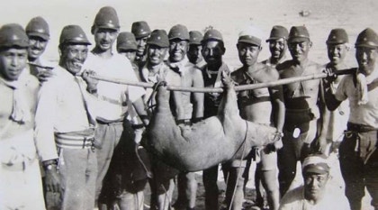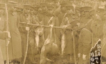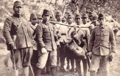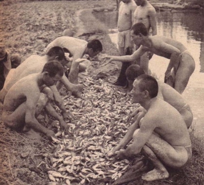 중일전쟁 당시 중국의 농촌에서 그물질로 붕어를 잡은 일본군