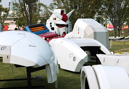 お台場、静岡で展示された実物大ガンダム立像が、お台場でパーツになって展示されている。