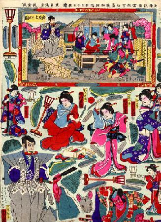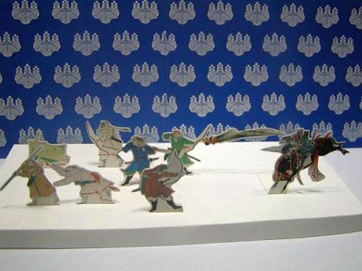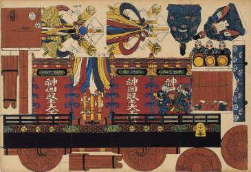 立版古(tatebanko)とは、江戸時代後期から明治期にかけて流行ったおもちゃ絵の一種で、一枚の絵柄からたくさんのパーツを切り抜き、設計図にそって組み立て、紙製のジオラマを完成させて楽しむものである。「組上げ灯籠」「組上げ絵」などともいう。歌舞伎の名場面などに題材を取るものが多かった。制作者は絵の才能¥と同時に、限られたの紙面にうまくパーツを配する技術も要求された。