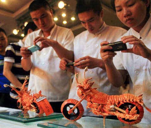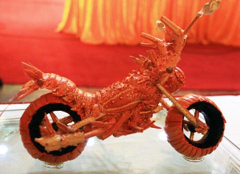 中国のフードカービング職人が、ロブスターの殻でバイクを作ったんだそうです