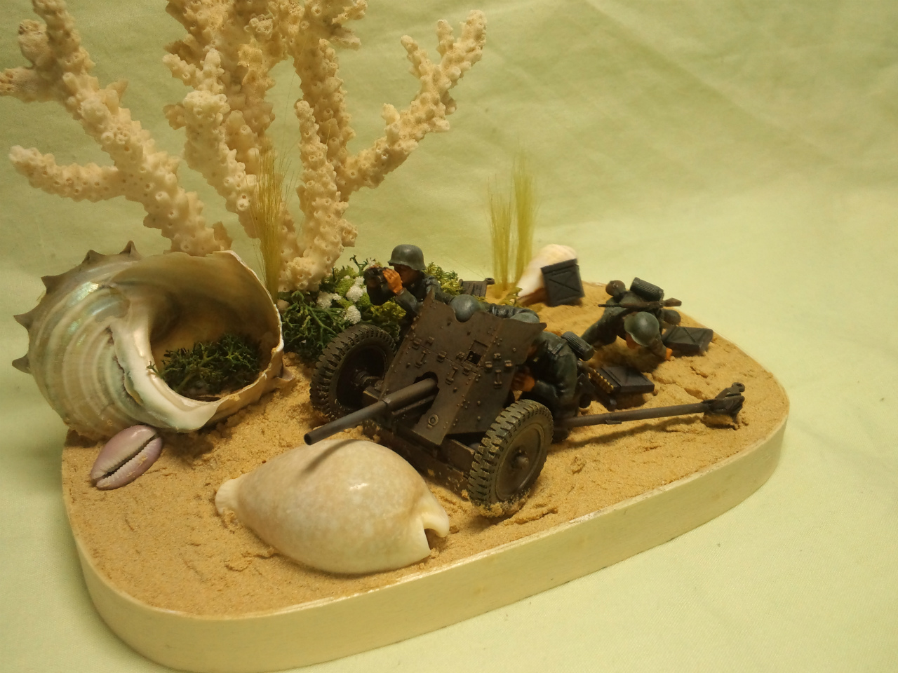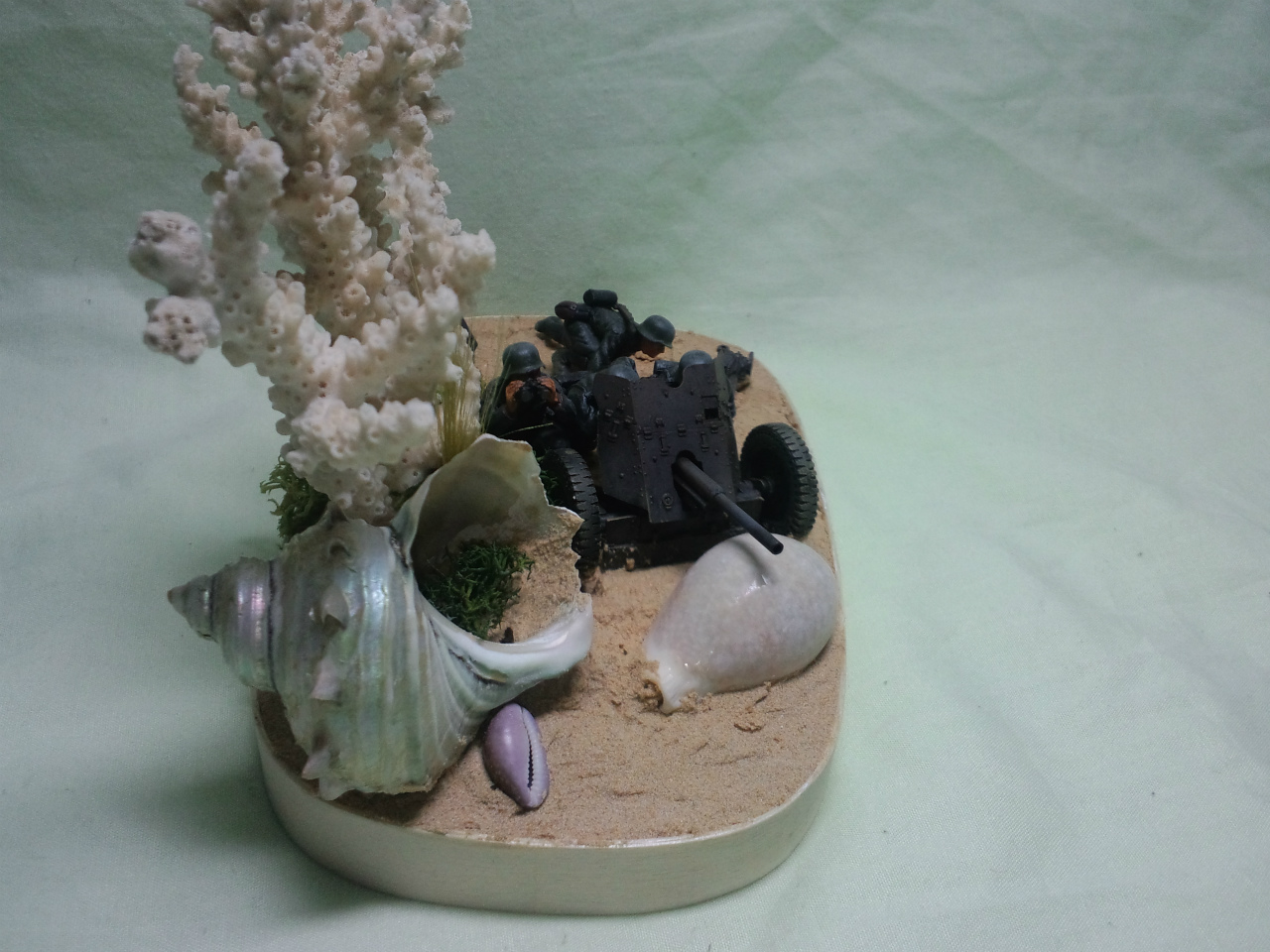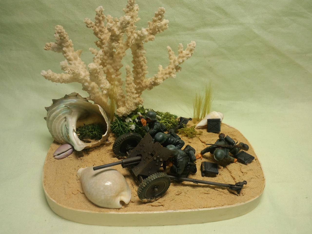 珊瑚の周りの茂みは、ハマナスなんかの茂みっぽいイメージを念頭にウッドランドシーニックス社ライケンに白いスポンジを適当に配置してみました。