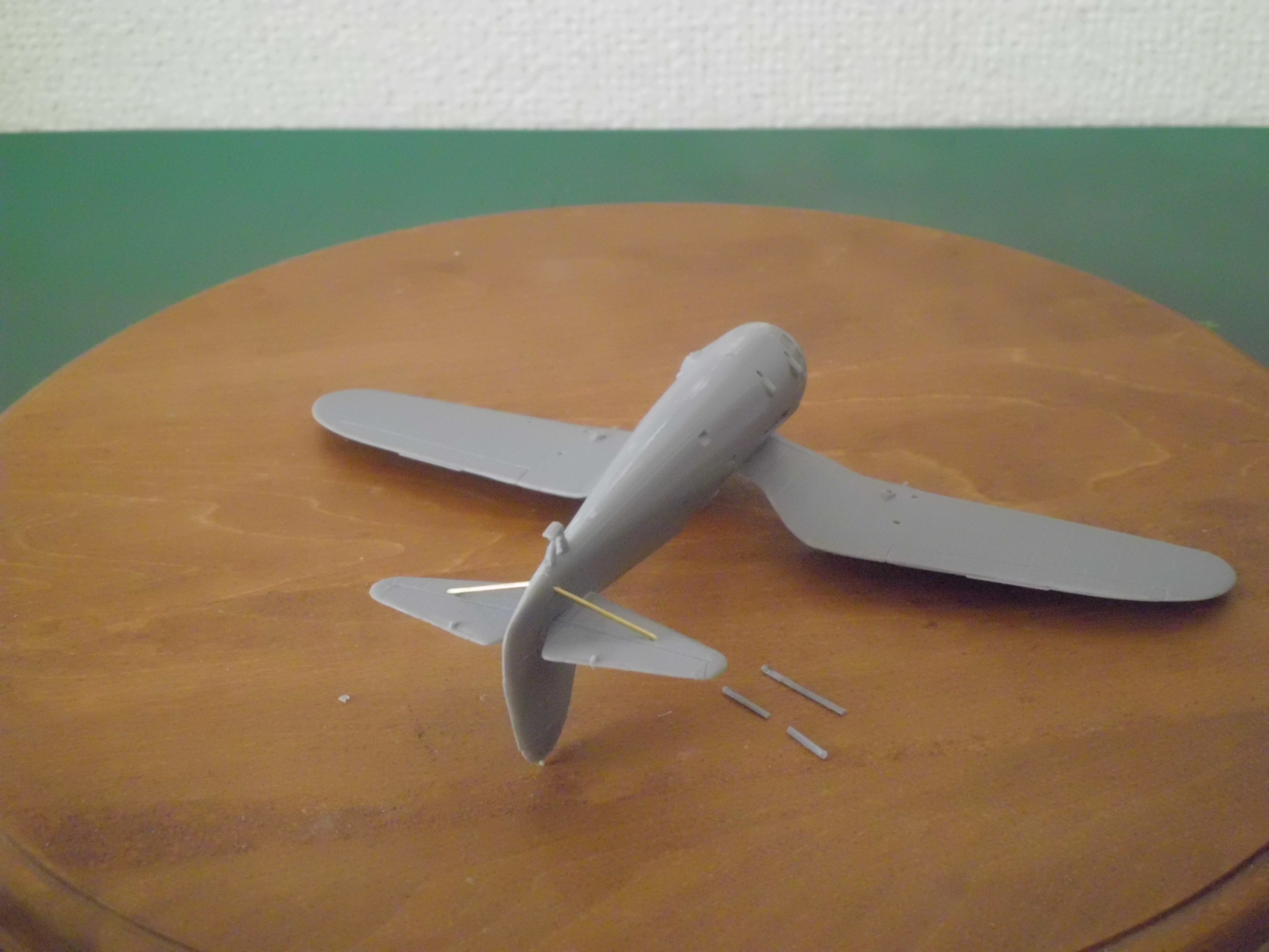 このキットもすぐ市の字まではサクサクと組めます。 ただし主翼の支柱が胴体部の機銃やクーラーのあと塗りが難しそうなので支柱を組む前にこの部分を先に塗装しマスキング