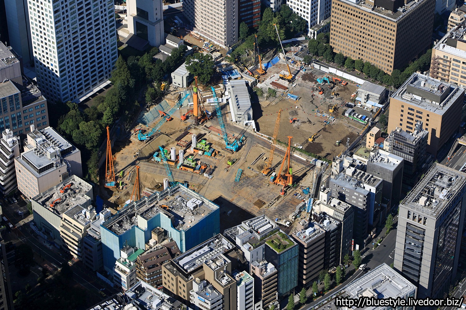 도쿄 월드 게이트 도라노몬 트러스트 타워의 건설지의 공중촬영